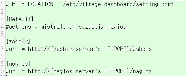 그림 4에서는 Setting.conf의 예를 나타냅니다. 해당 파일은 액션 리스트 패널 모듈에 의해 자동으로 읽어지게 되는데 Default 세션의 actions에서는 어떤 액션을 리스트로 구성할지 작성하는 부분이고 각각의 액션은 별도의 옵션을 작성할 수 있도록 되어 있습니다. 위에서 언급한 두 가지의 액션 외에도 Zabbix의 url을 입력하게 되면 Zabbix의 웹 UI로 이동할 수 있는 바로가기 액션을 설정할 수 도 있습니다.